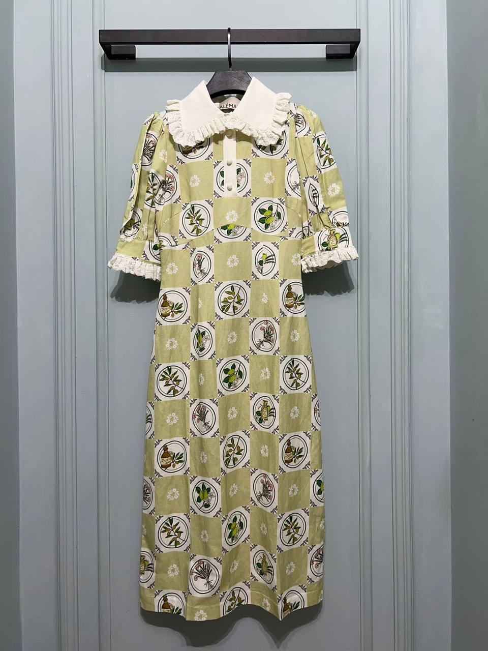 Платье Alemais LUX-91632 — это элегантное платье с круглым воротником и короткими рукавами. Платье выполнено в светлых тонах с ярким принтом, а также имеет волан на рукавах и воротнике. Идеально подходит для создания утонченного образа.