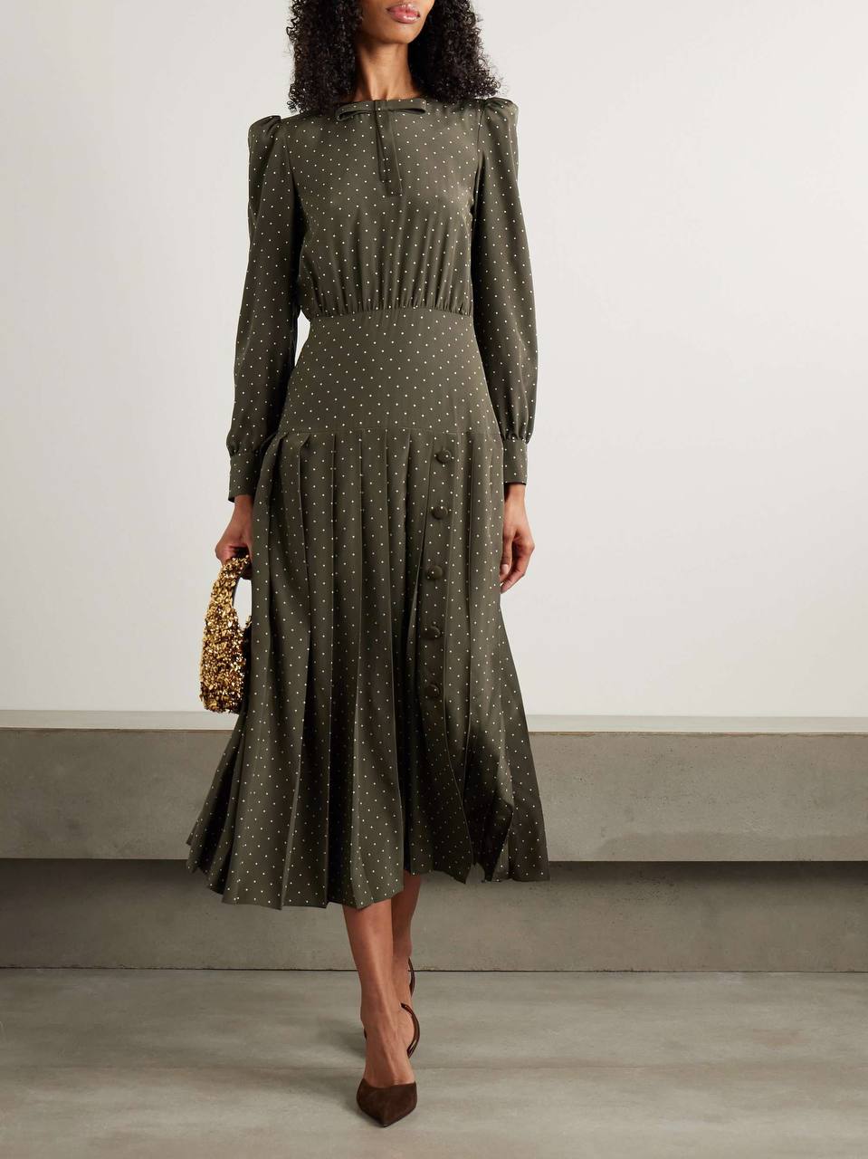 Платье Alessandra Rich LUX-120279 – элегантное платье в стиле ретро, украшенное принтом в горошек. Идеальный выбор для создания женственного и изысканного образа.