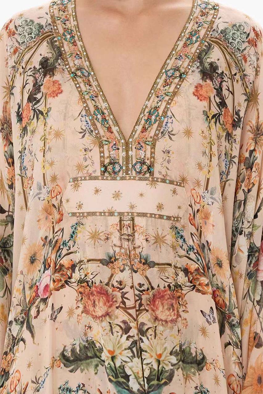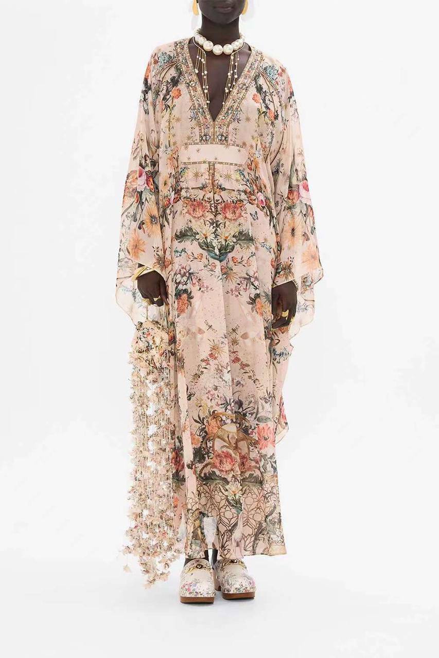 Платье Camilla LUX-108395 представляет собой элегантное платье-макси с ярким цветочным принтом. Дизайн платья предполагает свободный крой и широкие рукава, что создает ощущение легкости и комфорта. Идеально подойдет для особых случаев и повседневной носки.