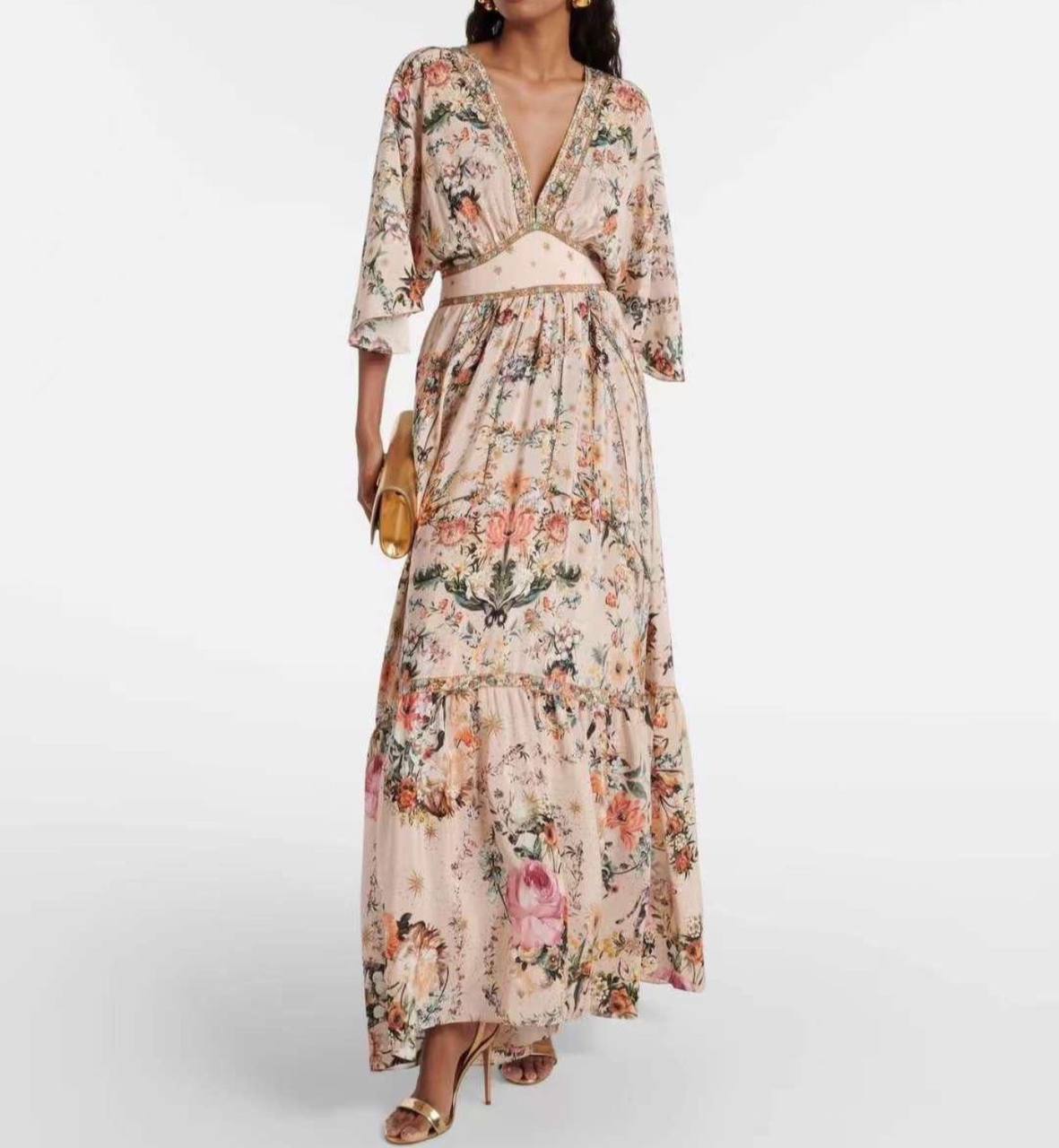 Платье Camilla LUX-108980 – это изысканное макси-платье с цветочным принтом. Мягкий персиковый цвет с ярким цветочным узором, подчеркивает женственность и элегантность. Идеально подойдет для особых случаев и летних вечеров.