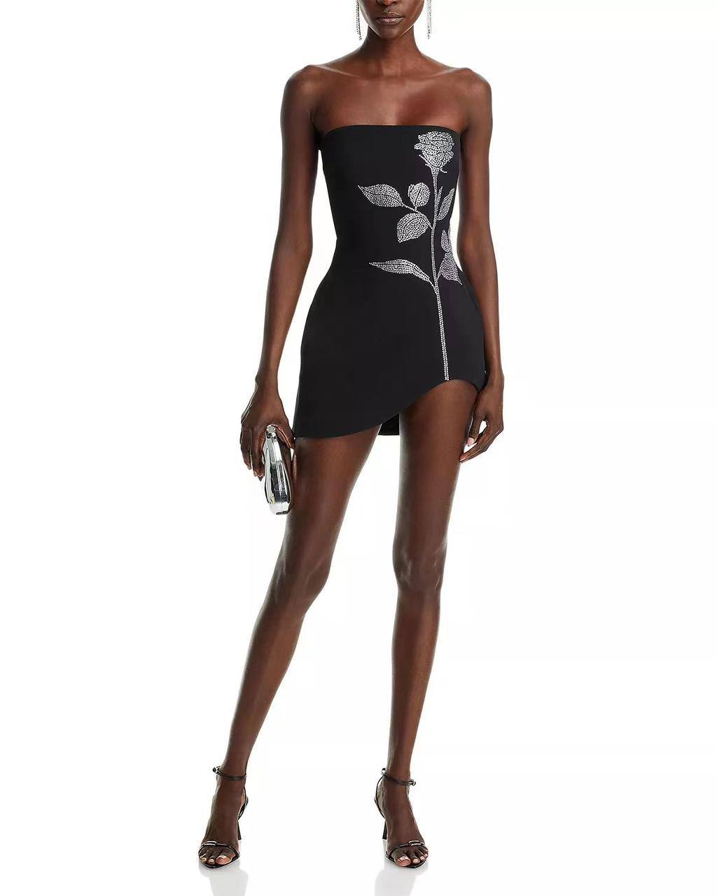 Платье David Koma LUX-107812 представляет собой стильное мини-платье без бретелей, выполненное в черном цвете. Особенностью модели является декор в виде изящного цветочного мотива из страз. Этот наряд идеально подойдет для вечерних выходов и торжественных мероприятий, добавляя образу элегантность и шик.