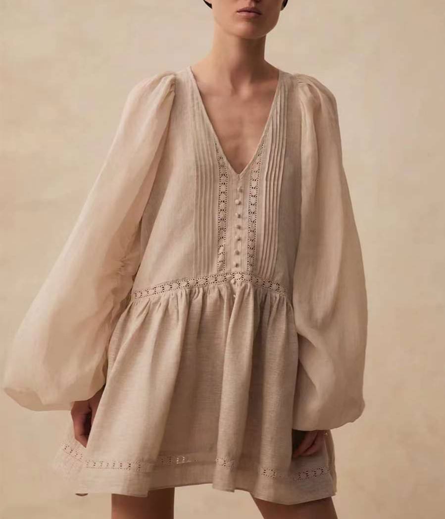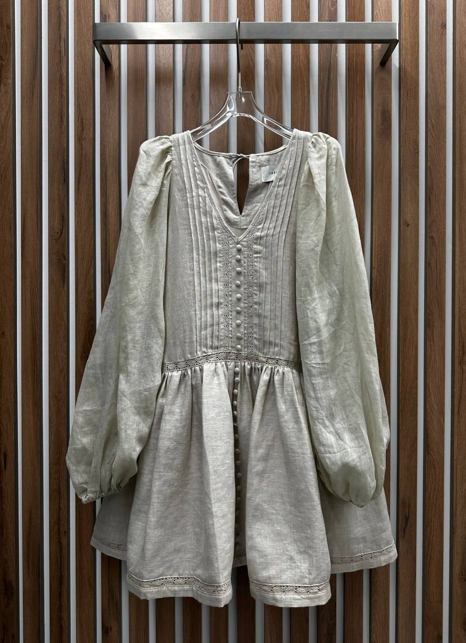 Платье Joslin LUX-103258 — это очаровательное платье в стиле бохо, выполненное в нейтральном бежевом оттенке. Оно имеет свободный крой, объемные рукава и акценты в виде декоративных пуговиц и кружевной отделки, создавая элегантный и воздушный образ. Идеально подходит для создания романтичных летних образов.