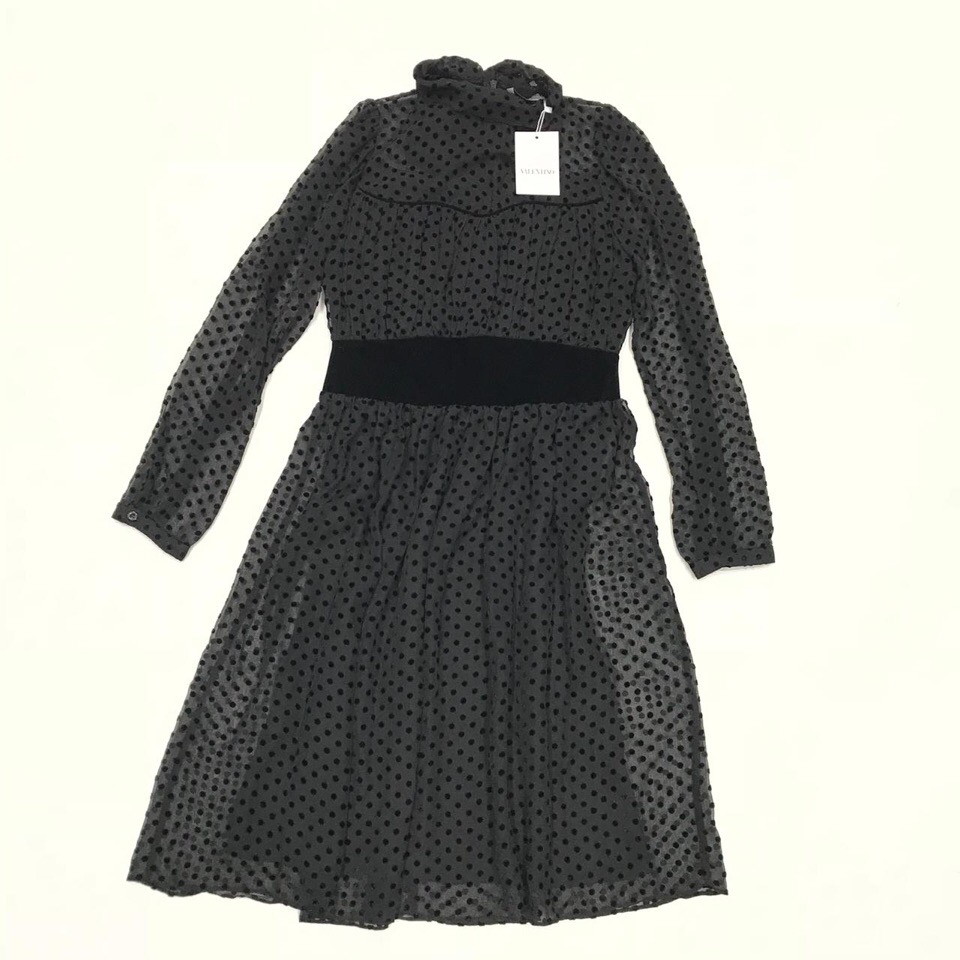Платье ОДЖ-069 от Valentino — это элегантное женское платье А-силуэта, выполненное в черном цвете с мелким горошком. Модель средней длины с длинными рукавами и высокой горловиной-жабо придает образу утонченность. Черная эластичная вставка на талии подчеркивает фигуру, а легкая струящаяся ткань обеспечивает комфорт. Это платье идеально подойдет для создания стильных вечерних или коктейльных образов.