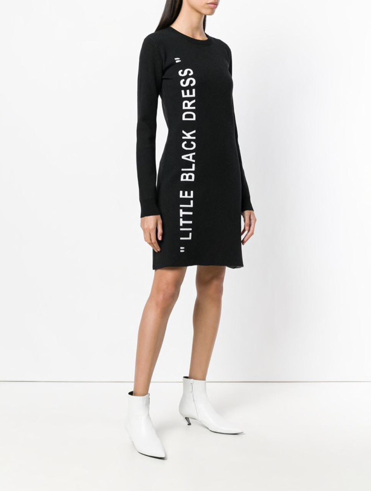 Платье ОДЖ-288 от OFF-WHITE - это элегантное и стильное решение для современной женщины. Модель выполнена в лаконичном черном цвете, дополненная контрастной надписью "LITTLE BLACK DRESS" по боковому шву, что придает ей уникальный шарм. Оно идеально подходит для создания как повседневных, так и более изысканных образов, подчеркивая индивидуальность.