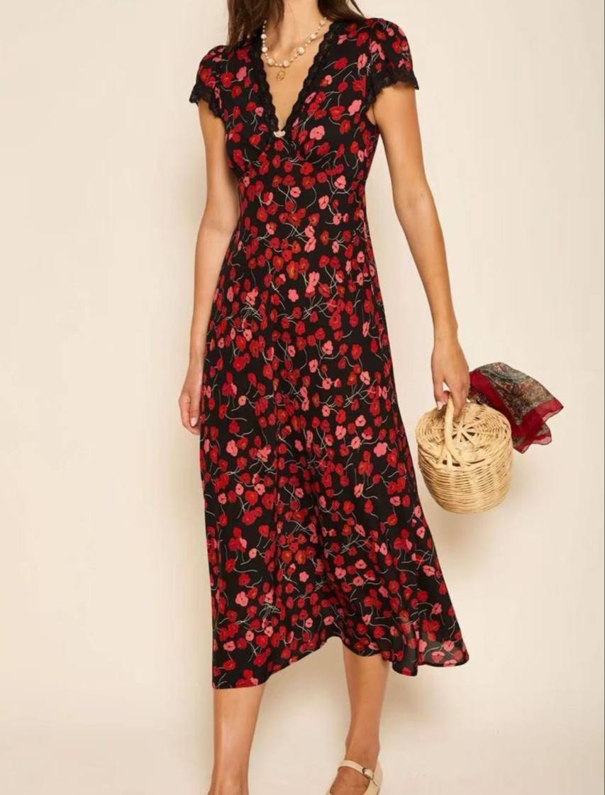 Платье Rixo LUX-116990 – элегантное платье с цветочным принтом. Модель выполнена в романтичном стиле, с V-образным вырезом, короткими рукавами и расклешенным подолом. Идеальный вариант для создания женственного образа на каждый день или для особого случая.