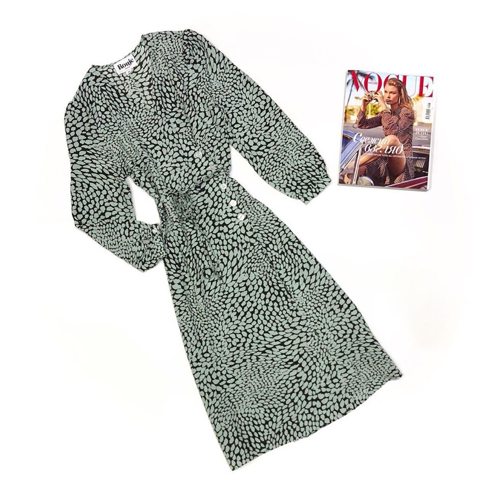Платье Rouje LUX-29968 – это изящное женское платье в стиле кэжуал. Оно выполнено в черно-мятной цветовой гамме с оригинальным принтом, напоминающим мелкие листья или капли. Платье имеет приталенный силуэт, подчеркнутый поясом, и длинные рукава, что делает его универсальным для различных сезонов.