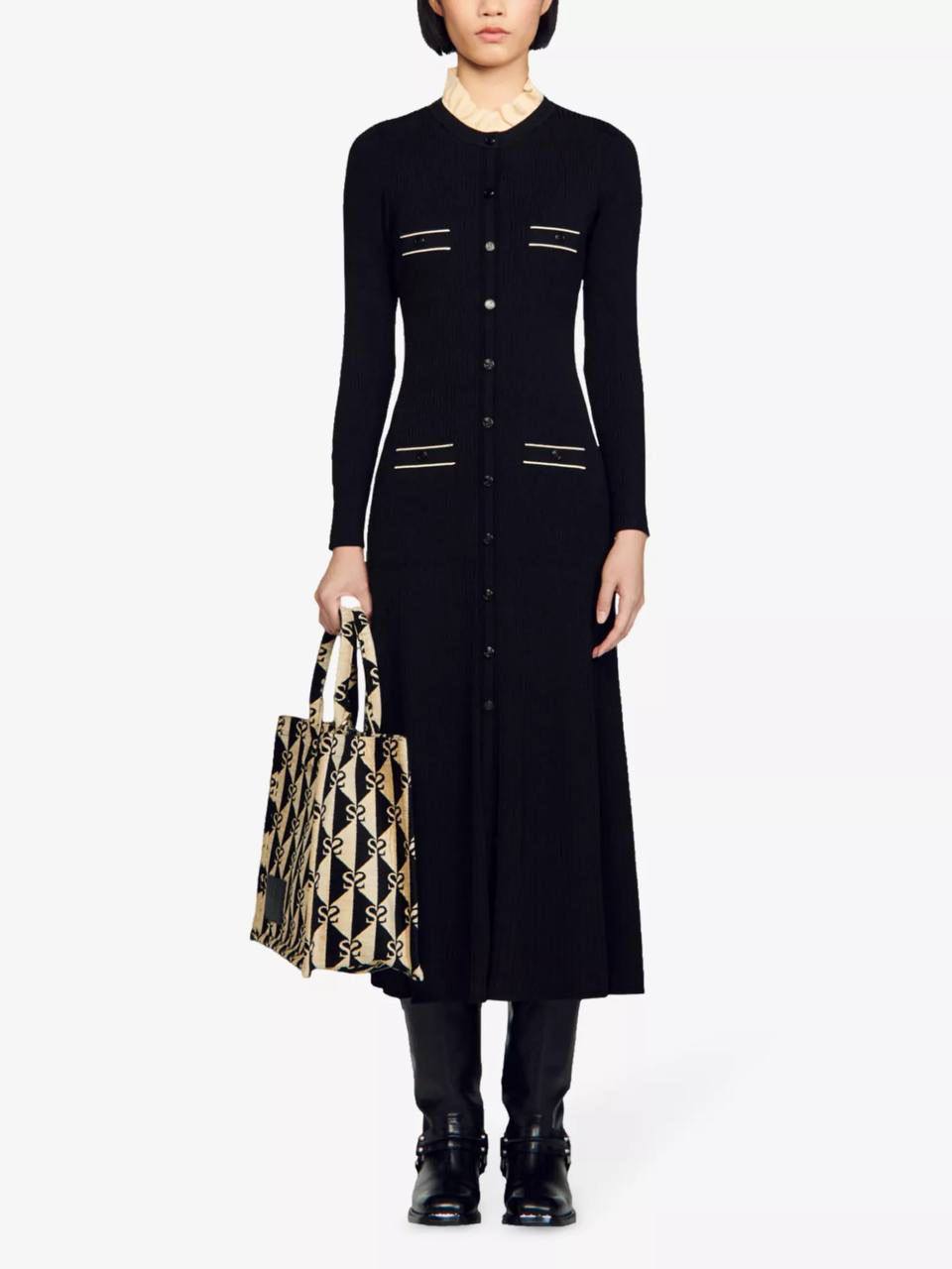 Платье Sandro LUX-110818 — элегантное вязаное платье черного цвета. Его прямой силуэт и длинные рукава создают утонченный образ. Платье идеально подходит для создания как повседневных, так и более формальных образов.