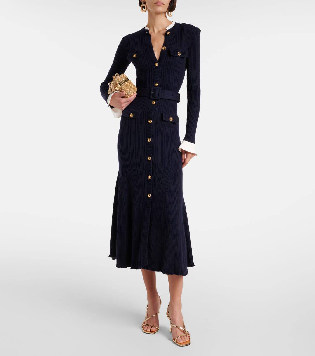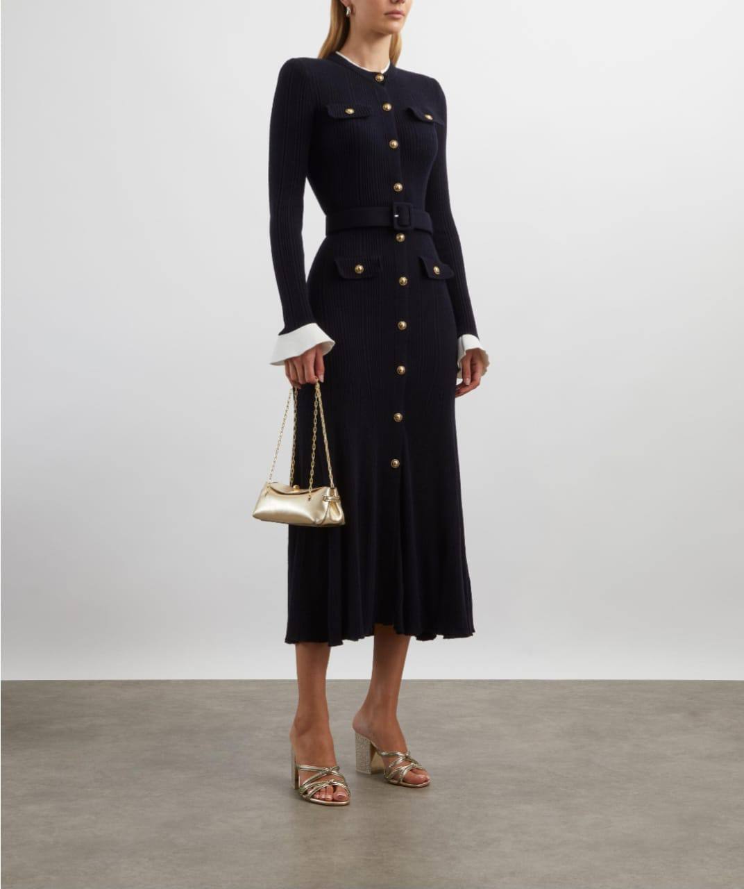 Элегантное платье миди от Self-Portrait – воплощение изысканности и утонченного стиля. Приталенный силуэт с акцентом на талии и рукава с манжетами создают женственный и запоминающийся образ. Идеально подходит для особых случаев и создания элегантного повседневного образа.