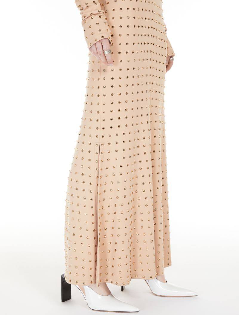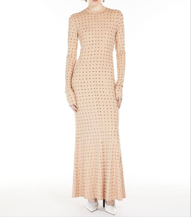 Платье Sportmax LUX-115482 представляет собой элегантное платье персикового цвета в пол, с длинными рукавами и круглым вырезом горловины. Платье украшено перфорацией, что придает ему изысканный и современный вид. Эта модель подойдет для вечерних выходов, торжественных мероприятий и создания стильного образа.