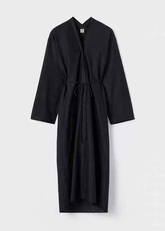 Платье Toteme LUX-86256 представляет собой элегантное черное платье, выполненное в минималистичном стиле. Платье имеет свободный крой, длинные рукава и пояс на талии, подчеркивающий силуэт. Идеально подходит для создания стильных и комфортных образов.
