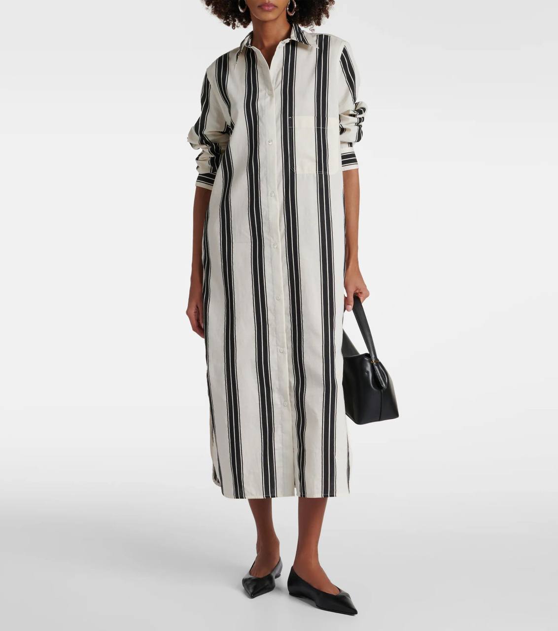 Платье Toteme LUX-107592 – это стильное платье-рубашка в полоску, представленное в черно-белой цветовой гамме. Дизайн платья-рубашки подходит для повседневной носки. Платье отлично подойдет для создания элегантного образа.