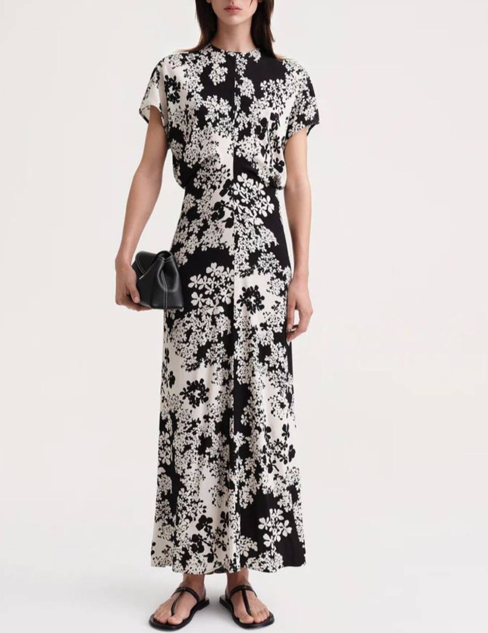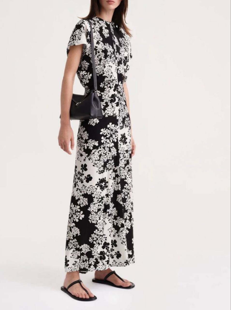 Платье Toteme LUX-107275 — это элегантное платье с короткими рукавами, выполненное в черно-белых тонах с цветочным принтом. Платье имеет свободный крой, обеспечивающий комфорт и легкость в носке. Оно идеально подходит для создания стильного и изысканного образа.