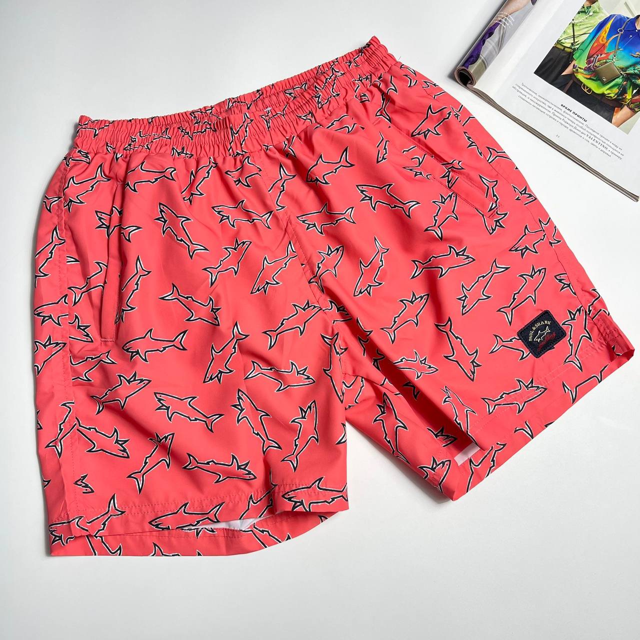 Плавитетельные шорты Paul & Shark LUX-109221, представленные на изображении, выполнены в ярком коралловом цвете с повторяющимся принтом в виде акул. Это шорты для плавания с современным дизайном, которые подойдут для пляжного отдыха или активного времяпровождения у воды.