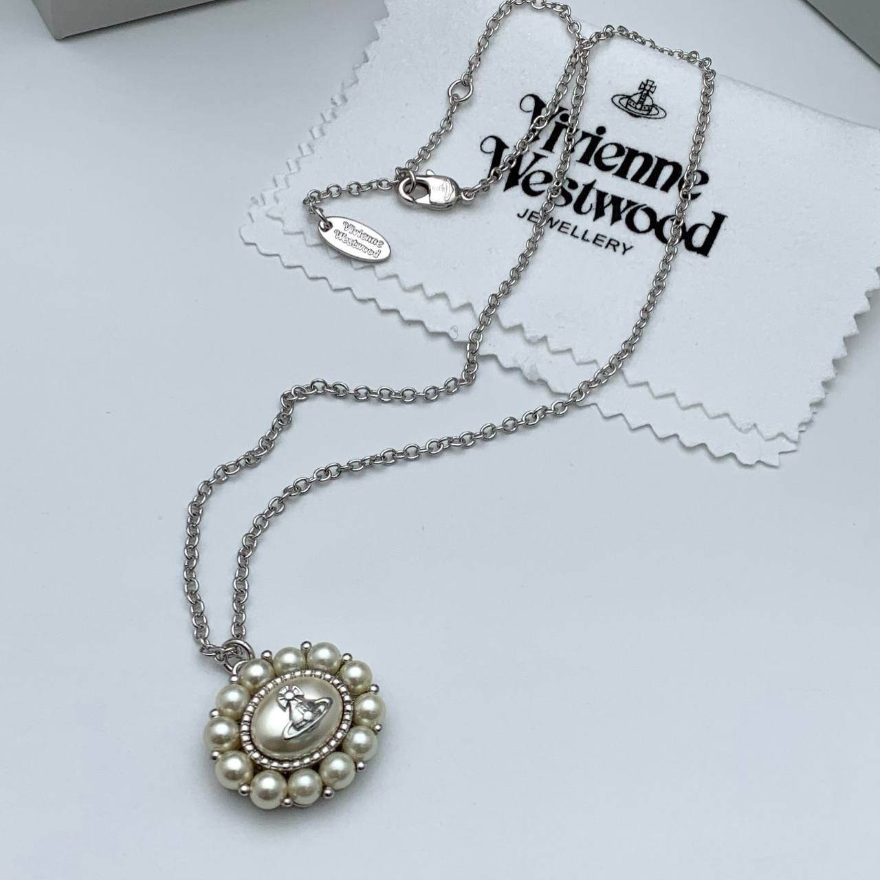 Подвеска Vivienne Westwood LUX-115719 — это элегантное украшение, которое станет прекрасным дополнением к любому образу. Подвеска выполнена в классическом стиле с жемчужной отделкой, подчеркивающей изысканность. Серебристый цвет цепочки гармонирует с центральным элементом, делая его идеальным аксессуаром для повседневной носки или особого случая.