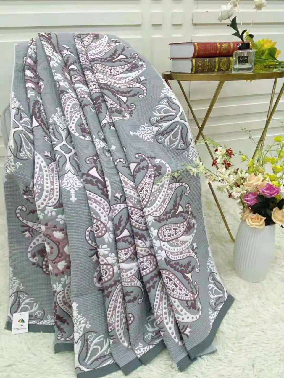 Это покрывало LUX-48681 бренда LUXE HOME, выполненное в элегантном стиле с изысканным восточным узором "пейсли". Серый фон и контрастный рисунок в бордово-белых тонах придают изделию утонченный и роскошный вид, делая его идеальным дополнением для спальни или гостиной. Оно добавит нотку изысканности любому интерьеру.