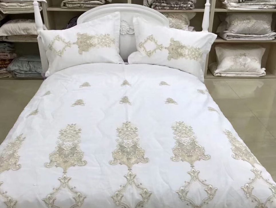 Покрывало LUX-38664 представляет собой изысканное текстильное изделие, призванное добавить роскоши и элегантности в спальню. Белоснежное покрывало украшено замысловатой вышивкой в золотистых тонах, создающей ощущение аристократизма. Его дизайн вдохновлен классическими мотивами, придавая интерьеру утонченный шарм.