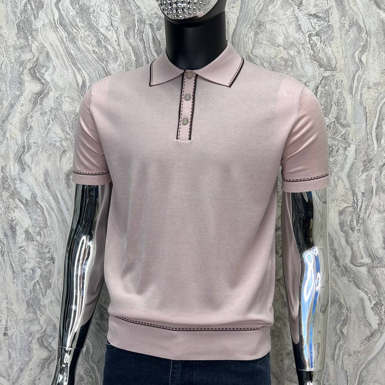 Поло LUX-84928 - это элегантная модель от LUXE-CRIME, выполненная в классическом стиле. Поло представлено в нежно-розовом цвете с контрастными темно-коричневыми деталями. Эта модель подойдет как для повседневной носки, так и для более формальных мероприятий.