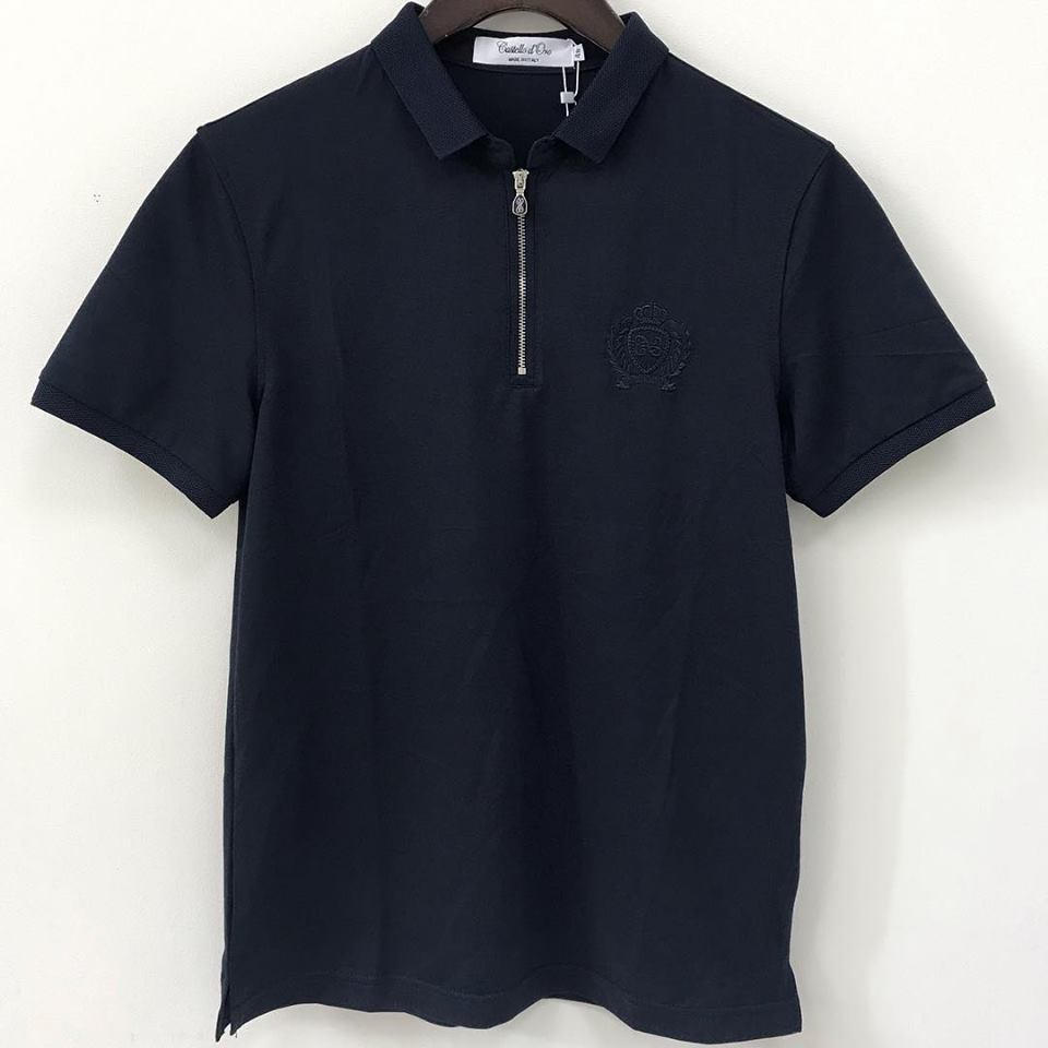 Это темно-синее поло с короткими рукавами и застежкой-молнией, выполненное в стиле casual. Аккуратный воротник и тисненый логотип на груди придают изделию элегантность. Такая модель идеально подойдет для создания стильных образов на каждый день, а также для неформальных встреч.