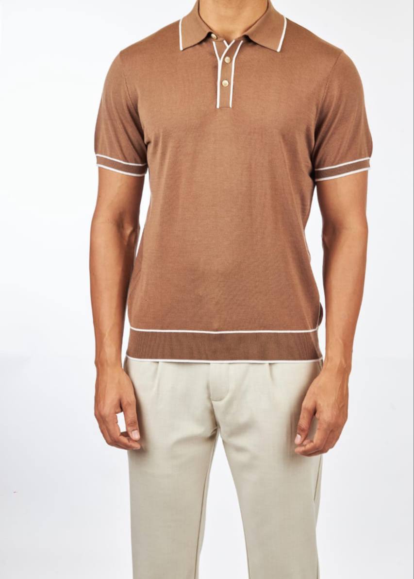 Поло Emiliano Zapata LUX-103225 — стильная рубашка поло с короткими рукавами, представленная в теплом коричневом цвете. Отличается элегантным дизайном с белыми контрастными полосками на воротнике и рукавах. Отлично подойдет для создания как повседневных, так и более формальных образов.