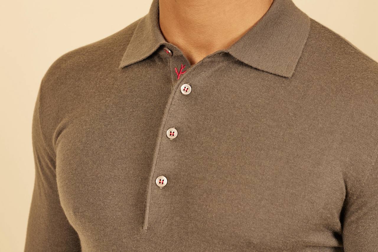 На фотографии представлена стильная поло Isaia LUX-123055. Эта модель с длинным рукавом отличается элегантным и сдержанным дизайном, подходящим для создания утонченного образа.