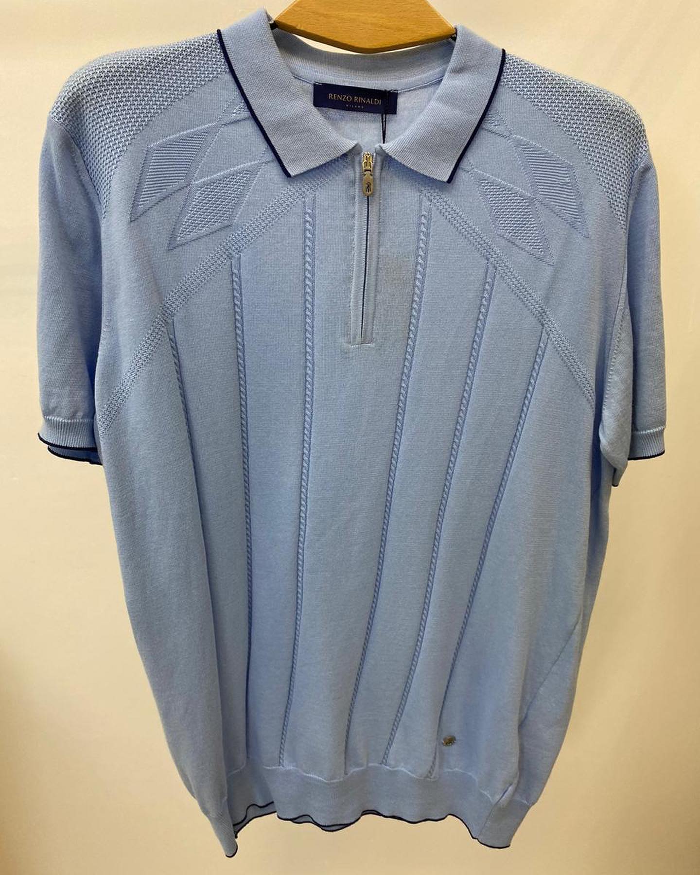Поло RENZO RINALDI LUX-33480 представляет собой элегантную модель в стиле кэжуал. Изделие выполнено в светло-голубом цвете и отличается интересным фактурным узором, который придает ему изысканный вид. Наличие молнии на воротнике добавляет функциональности и современного акцента. Это поло прекрасно подойдет для создания стильных образов на каждый день.