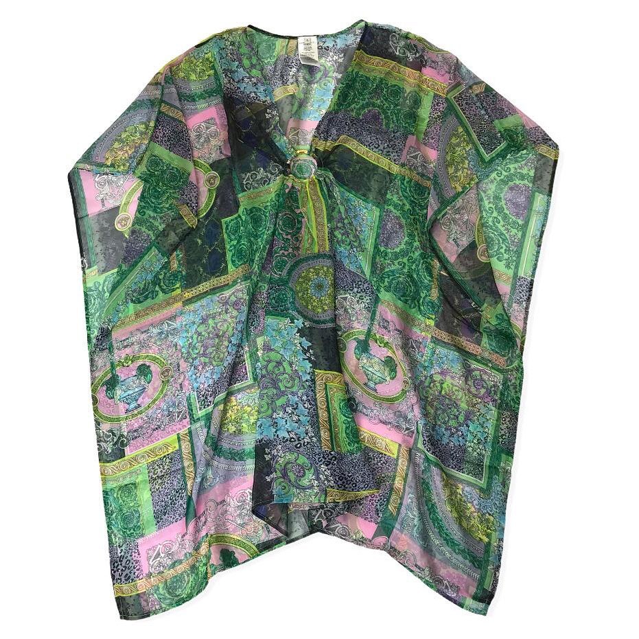 Это яркое и стильное пончо от Luxe-Crime, модель LUX-46781, воплощает в себе богемный шик и эксклюзивность. Оригинальный принт, напоминающий калейдоскоп из винтажных узоров и цветочных мотивов, создает неповторимый образ. Пончо идеально подойдет для создания эффектных летних образов, пляжного стиля или в качестве дополнения к вечернему наряду.
