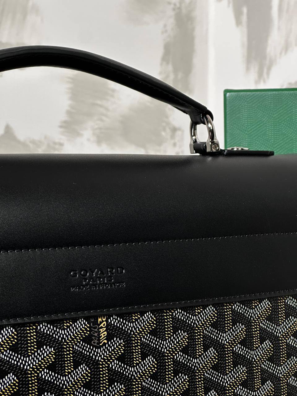 Портфель GOYARD LUX-91763 — это элегантный аксессуар, выполненный в классическом стиле. Черный цвет в сочетании с фирменным узором Goyard придает портфелю узнаваемость и роскошный вид. Этот портфель идеально подойдет для деловых встреч и повседневного использования, подчеркивая статус владельца.
