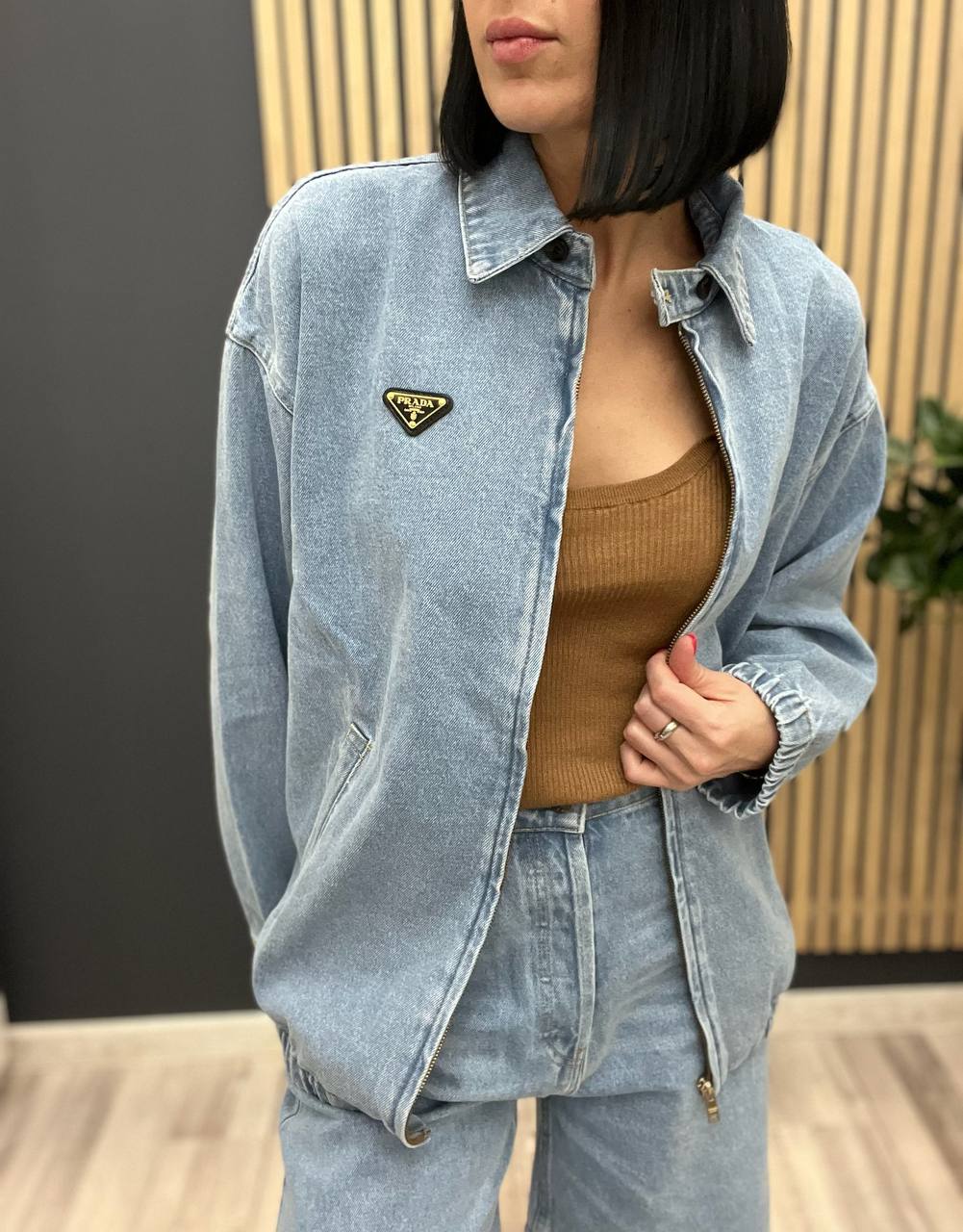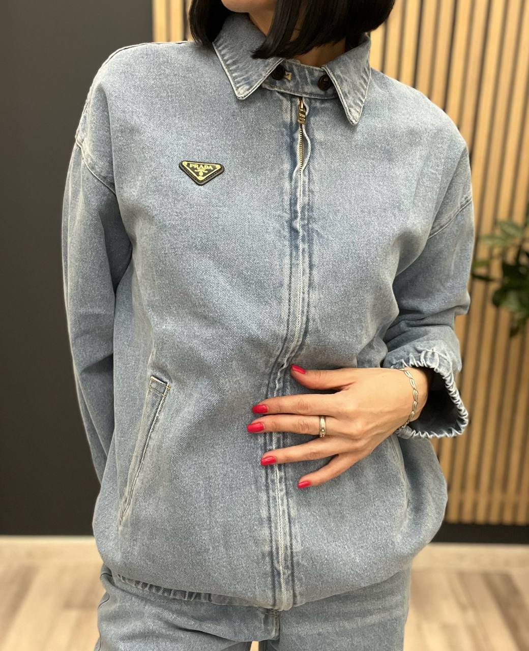 Бомбер Prada LUX-104221 - это стильная джинсовая куртка-бомбер от Prada, выполненная в повседневном стиле. Модель имеет классический воротник, застежку на молнию и фирменную нашивку с логотипом бренда. Данный бомбер идеален для создания модных и комфортных образов.