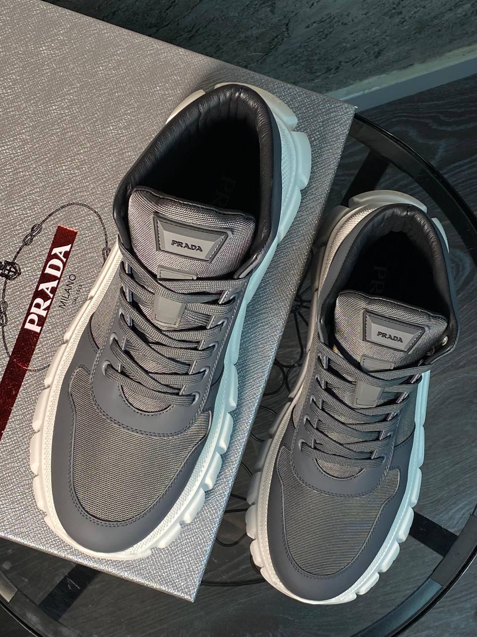 Ботинки Prada LUX-100495 представляют собой стильные ботинки от известного бренда. Они выполнены в сером цвете с белой подошвой, что создает современный и привлекательный вид. Эти ботинки идеально подходят для повседневной носки, обеспечивая комфорт и подчеркивая индивидуальность.