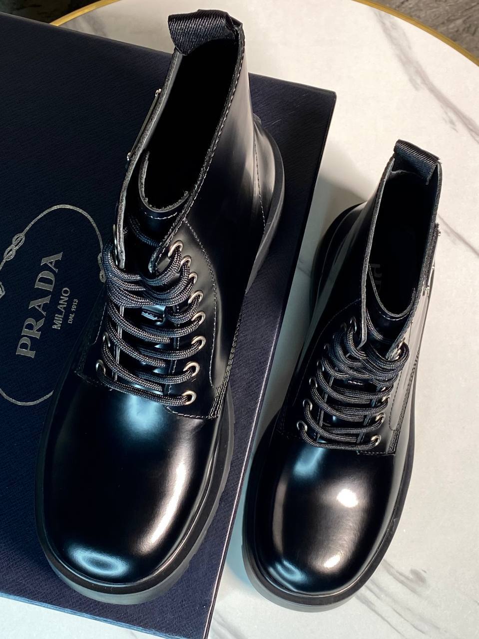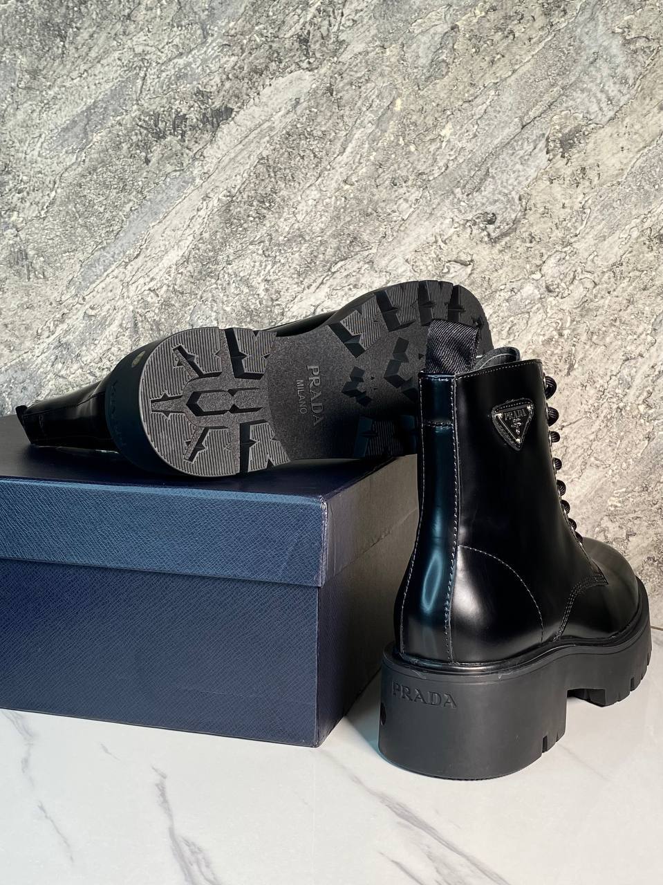 Ботинки Prada LUX-112674 – это стильные ботинки, выполненные в классическом черном цвете. Модель, представленная на изображении, имеет глянцевую поверхность, которая придает обуви элегантный вид. Ботинки подойдут для создания различных образов, от повседневных до более формальных.
