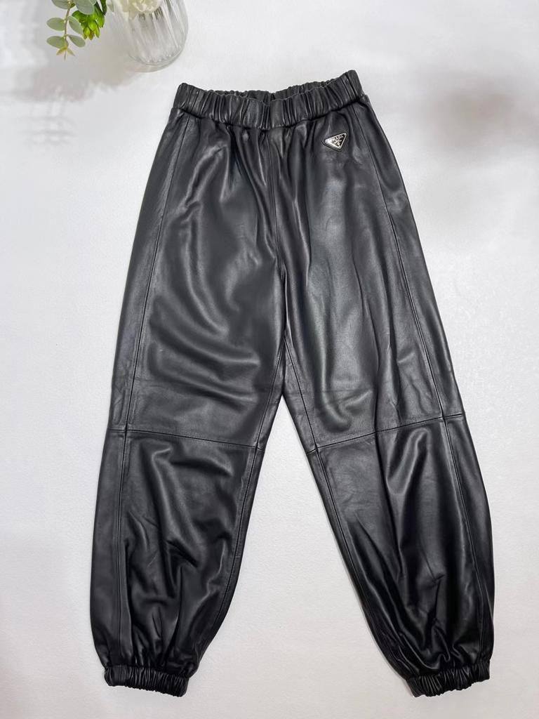 Брюки Prada LUX-71689 – это стильные брюки из искусственной кожи черного цвета, которые сочетают в себе элементы спортивного стиля и элегантности. Брюки имеют свободный крой, резинку на поясе и манжетах, что обеспечивает комфортную посадку. Эта модель идеально подходит для создания модных и современных образов.
