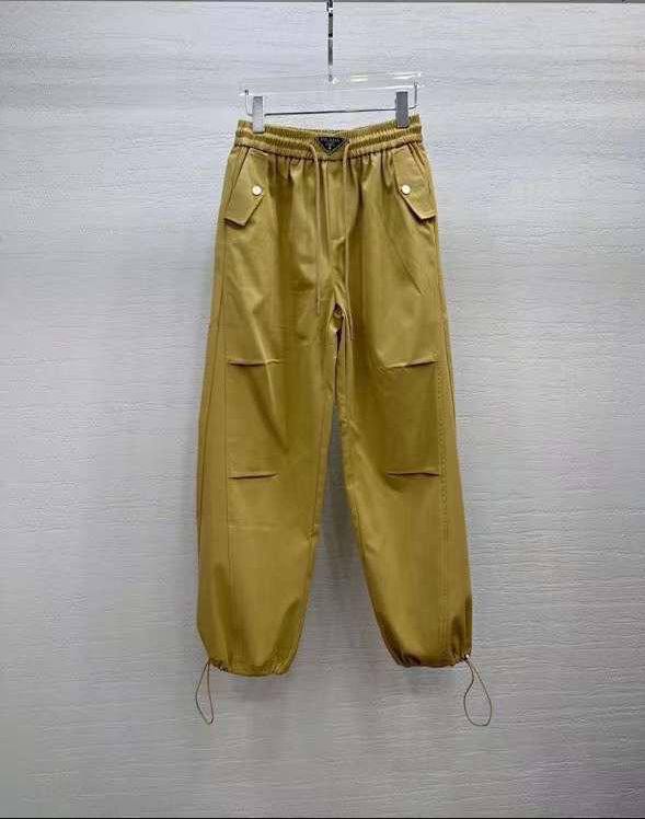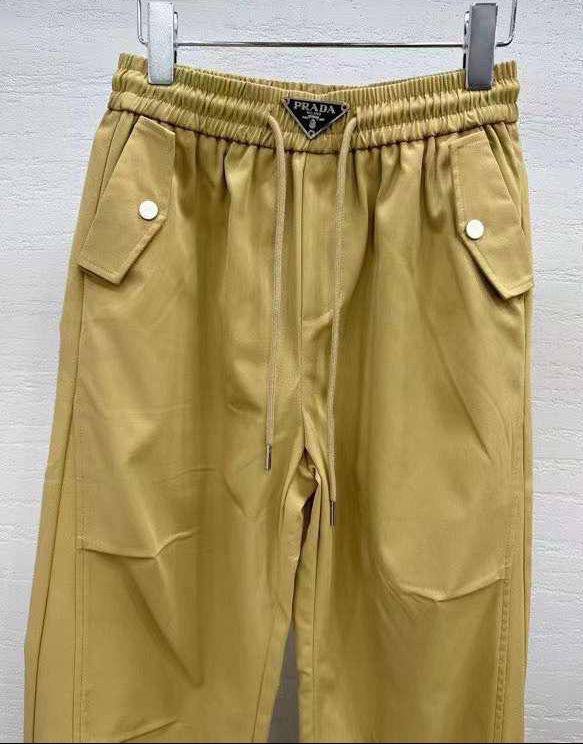 Брюки Prada LUX-105758 – это стильные брюки в современном стиле. Брюки имеют свободный крой и зауженные манжеты, выполнены в горчичном цвете. Дизайн предполагает наличие накладных карманов и декоративных деталей.