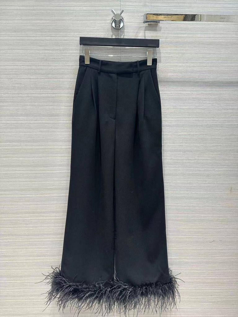 Брюки Prada LUX-99465 - это элегантная модель черного цвета, которая сочетает в себе классический крой и изысканные детали. Брюки характеризуются прямым силуэтом и отделкой из перьев на краях, что придает им особый шарм и делает их подходящими для вечерних выходов. Они идеально подойдут для создания стильных и запоминающихся образов.