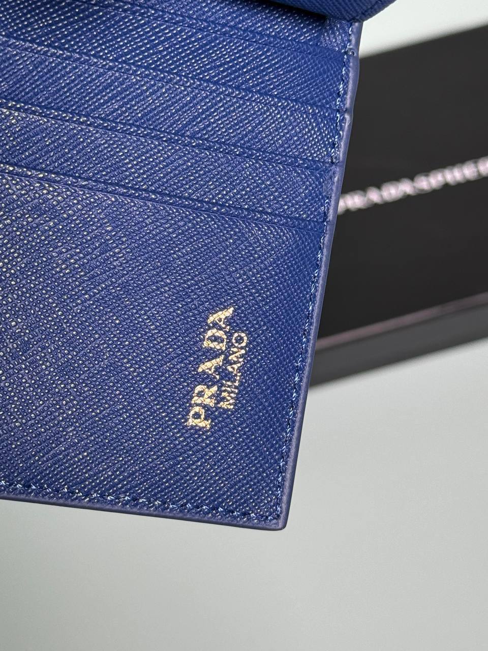Бумажник Prada LUX-109609 выполнен в классическом стиле, придающем ему элегантный вид. Бумажник выполнен в синем цвете с текстурированной поверхностью. Он предназначен для повседневного использования и подчеркивает статус владельца.