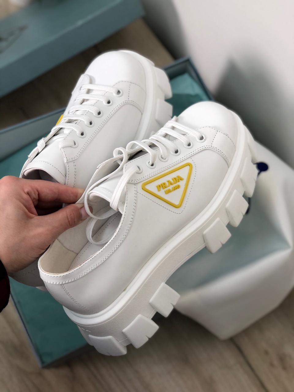 Эти белые мужские дерби Prada LUX-47224, выполненные в современном стиле, идеально подойдут для создания элегантных и трендовых образов. Аккуратный дизайн и фирменный треугольный логотип Prada на боковой стороне подчеркивают принадлежность к итальянскому люксовому бренду. Массивная подошва обеспечивает комфорт и придает обуви особый характер, делая ее актуальным выбором для городского стиля.