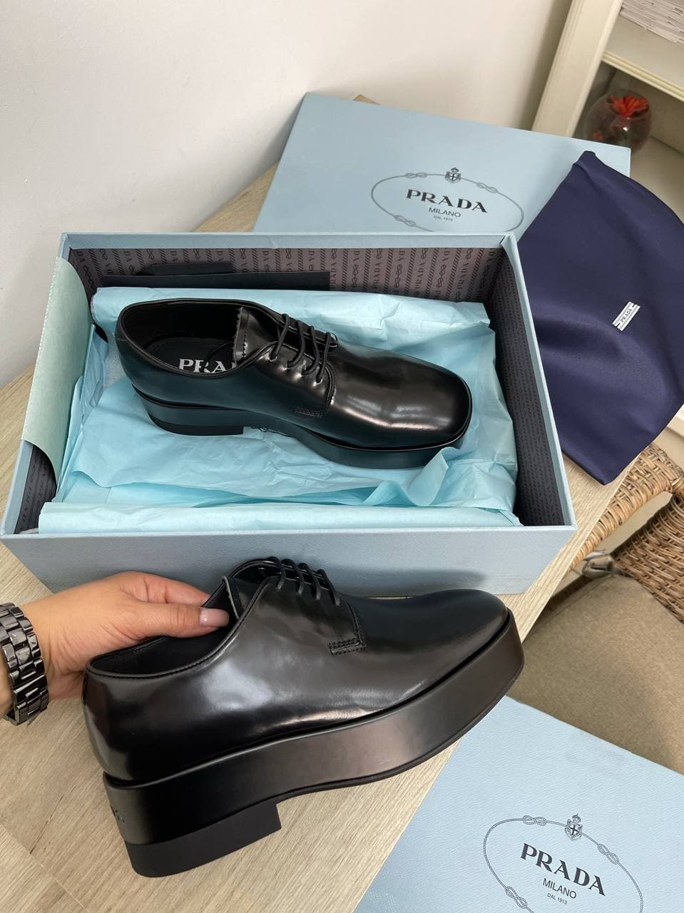 Эти элегантные черные дерби Prada LUX-57024, выполненные в классическом стиле, идеально дополнят любой образ, придавая ему нотку изысканности. Их уникальный дизайн и высокое качество делают их незаменимым элементом гардероба.