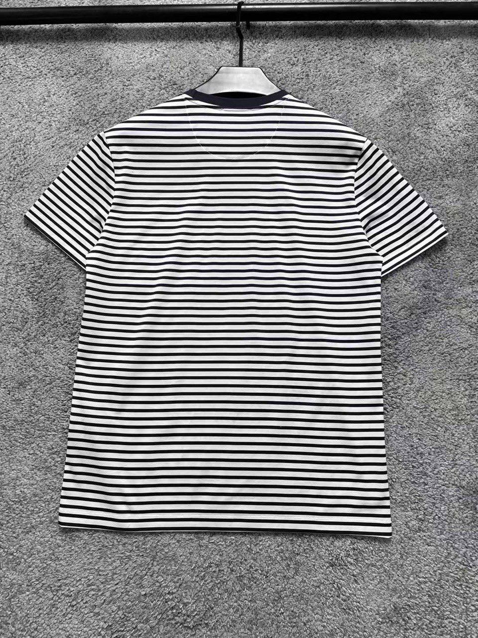 Футболка Prada LUX-84968 представляет собой стильный предмет гардероба. Она выполнена в классическом полосатом дизайне, сочетающем белый и черный цвета, что придает ей универсальность и элегантность. Эта футболка идеально подойдет для создания повседневных образов.