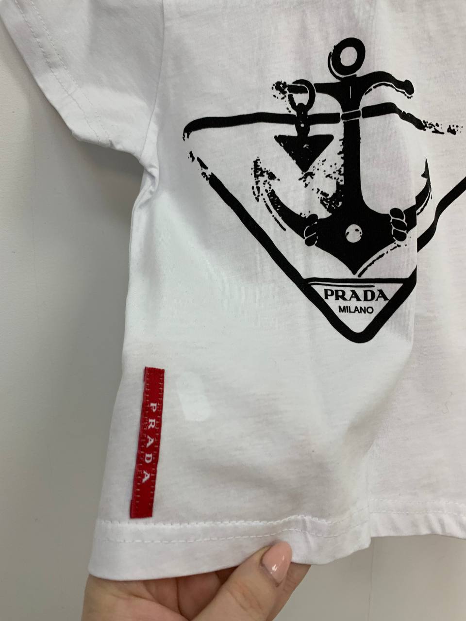 Футболка Prada LUX-84060 – это стильная детская футболка от известного бренда. Она выполнена в белом цвете с ярким графическим принтом в виде якоря. Футболка имеет классический крой с короткими рукавами, что делает ее идеальным выбором для повседневной носки.