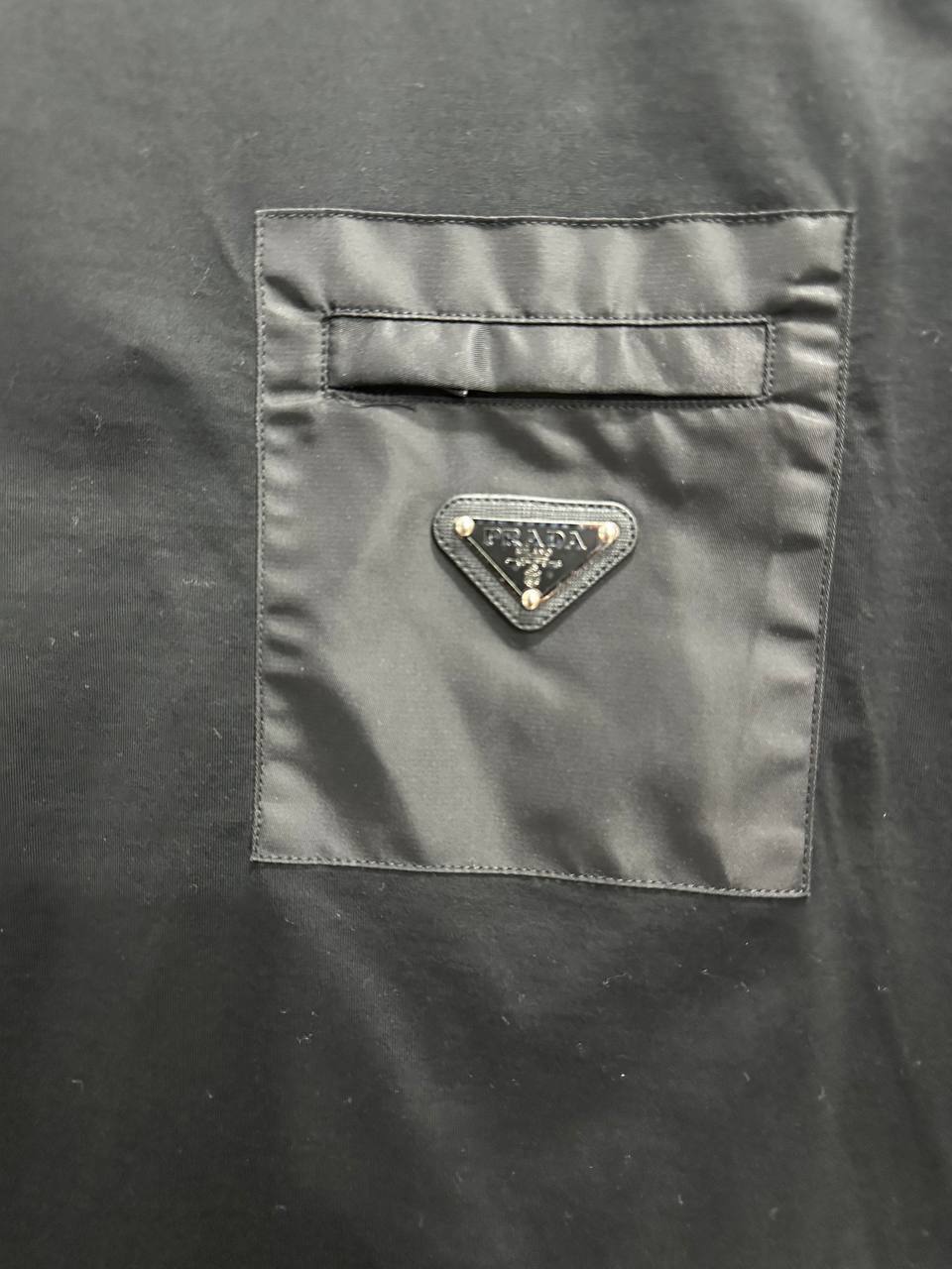 Футболка Prada LUX-114775 – это воплощение минимализма и элегантности. Чёрная футболка с короткими рукавами и небольшим карманом спереди. Карман декорирован фирменным логотипом бренда.