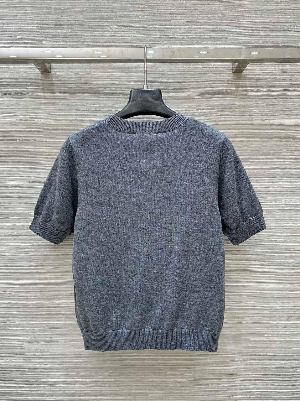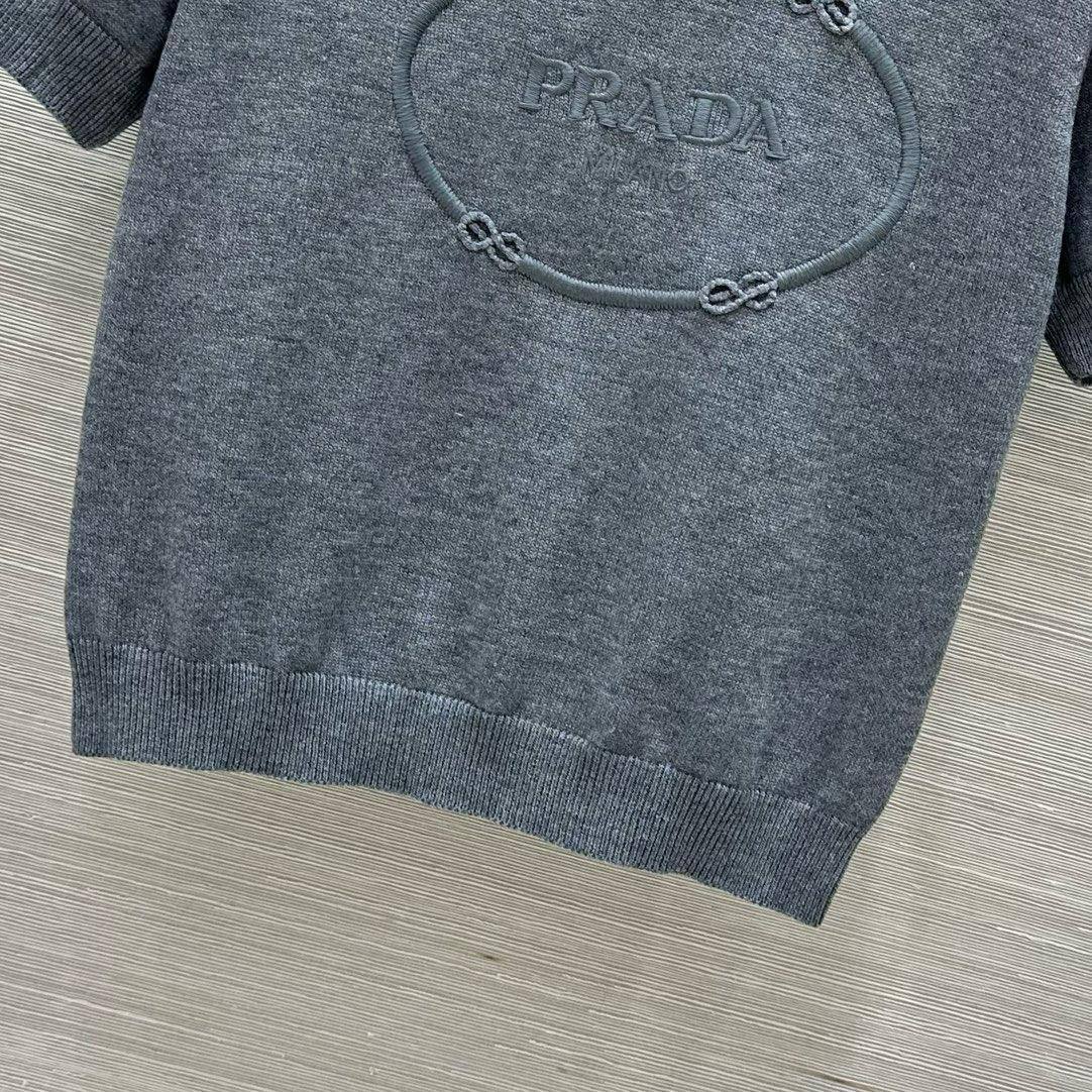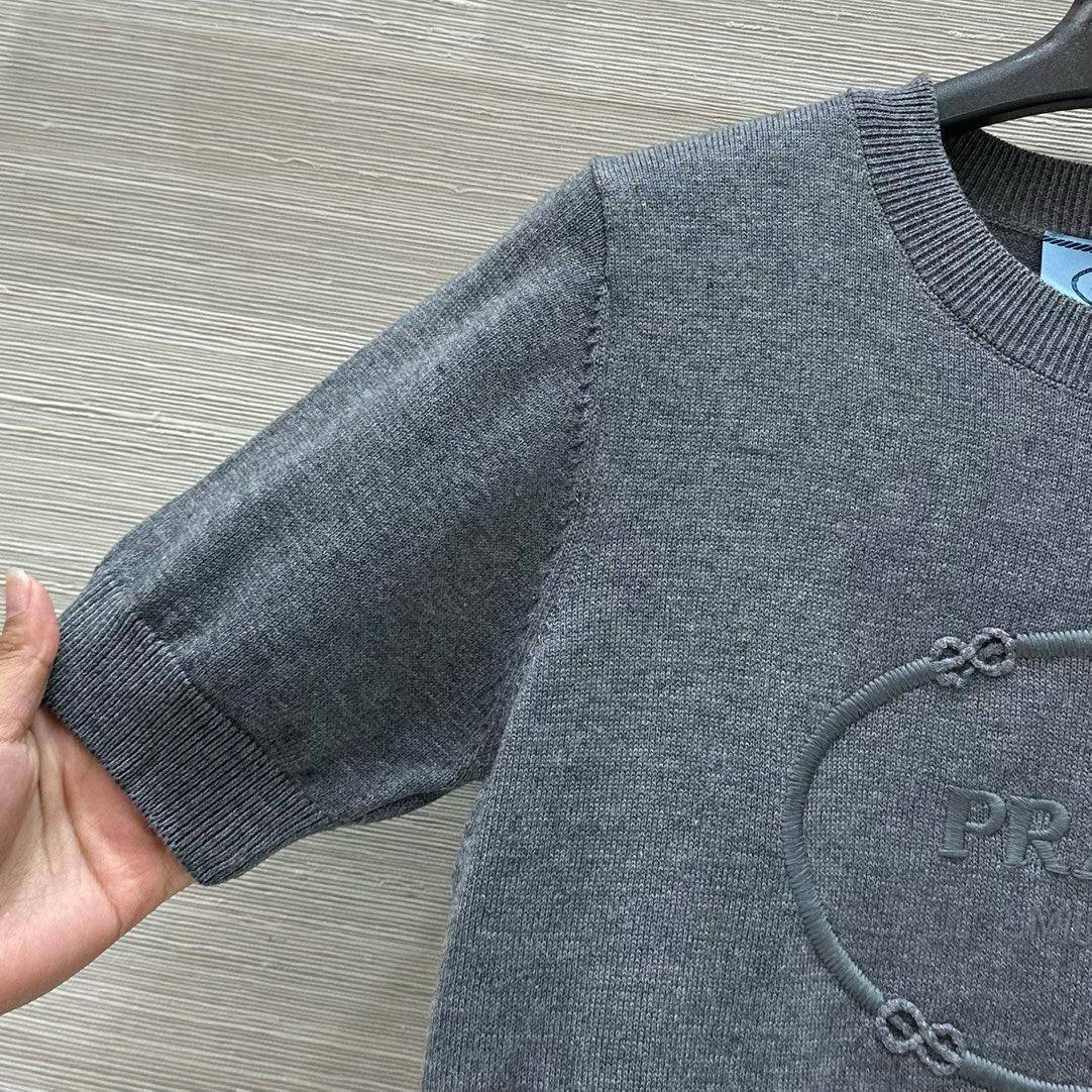 Футболка Prada LUX-116212 выполнена в элегантном стиле. Серая футболка с короткими рукавами и круглым вырезом демонстрирует лаконичный дизайн с фирменным логотипом бренда. Эта футболка — отличный выбор для создания повседневных образов.