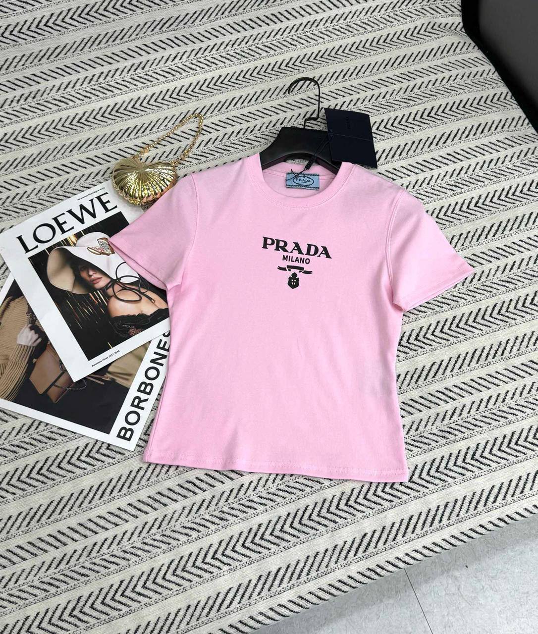 Футболка Prada LUX-117366 — это предмет гардероба, воплощающий современный стиль и элегантность. Розовая футболка украшена знаковым логотипом бренда, что делает её узнаваемой и модной. Идеально подходит для создания повседневных и эффектных образов.