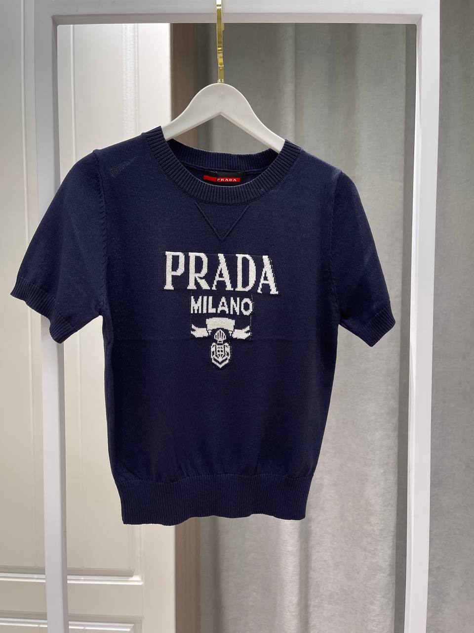 Футболка Prada LUX-121297 - это стильный и элегантный предмет гардероба. Она выполнена в классическом дизайне с акцентным логотипом бренда, что делает ее узнаваемой и модной.