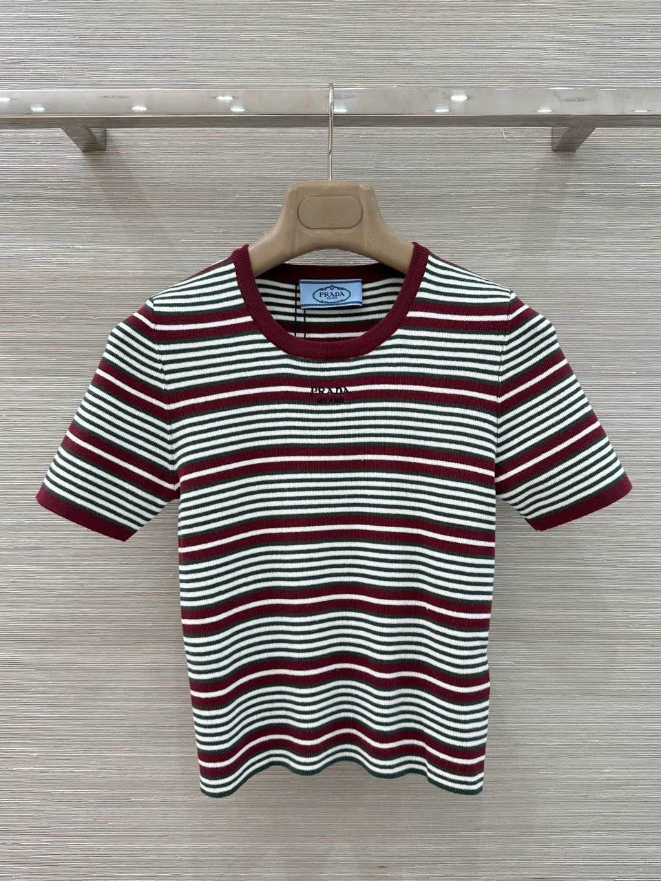 Prada LUX-131595 – стильная футболка в полоску, идеально подходящая для создания ярких и запоминающихся образов. Она сочетает в себе комфорт и элегантность.