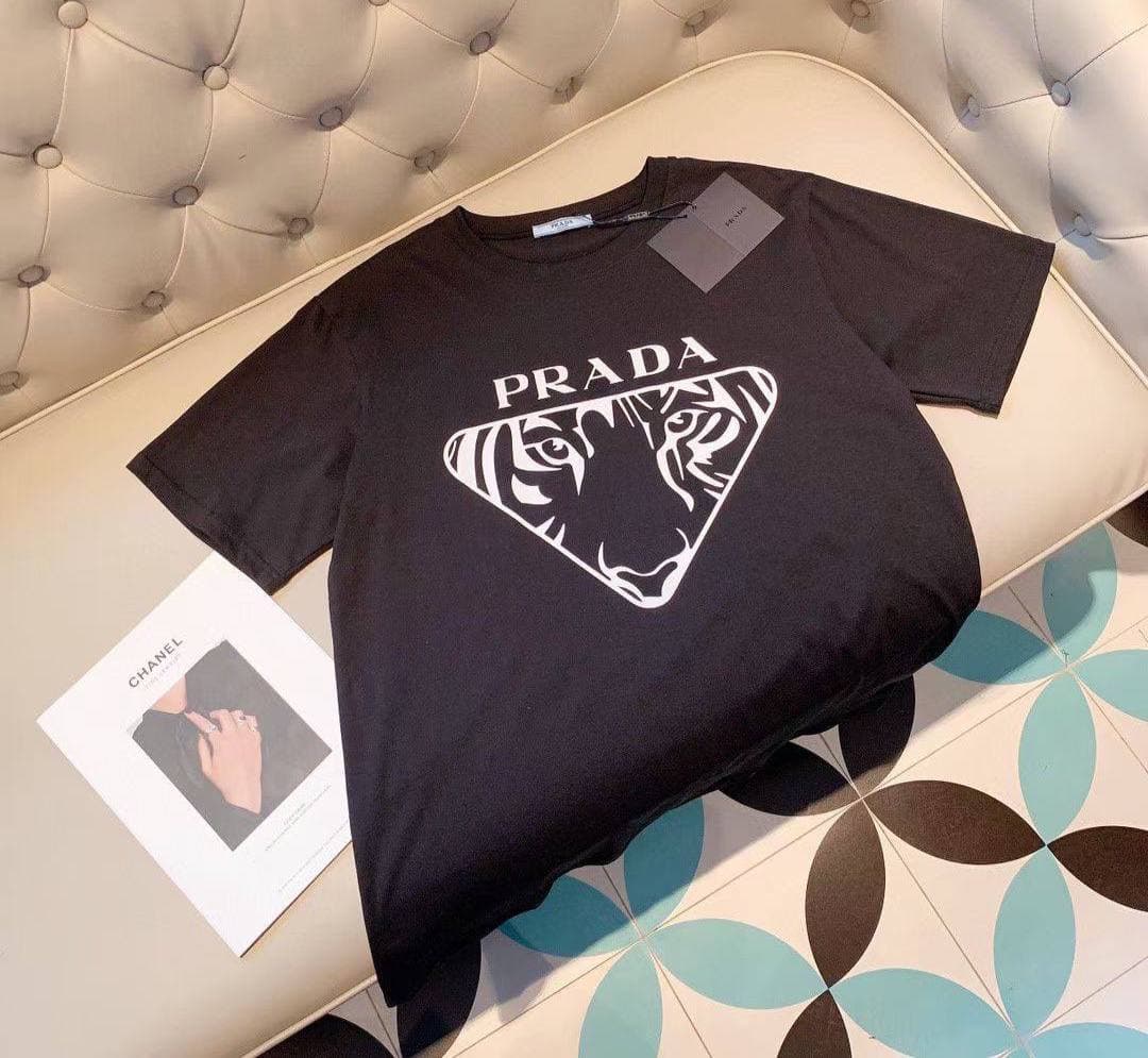 Prada Футболка мужская LUX-64149 – это стильная и современная модель, выполненная в классическом черном цвете. Футболка украшена ярким принтом в виде головы тигра в треугольнике, что придает ей индивидуальность и узнаваемый стиль бренда Prada. Эта футболка идеально подходит для создания расслабленных, но в то же время эффектных образов.