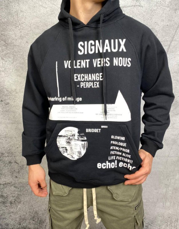 Это черное худи Prada LUX-50028 с уникальным графическим принтом, сочетающим в себе типографические элементы и абстрактные узоры, станет стильным дополнением к вашему повседневному образу. Модель прямого кроя с капюшоном и карманом-кенгуру обеспечивает максимальный комфорт.