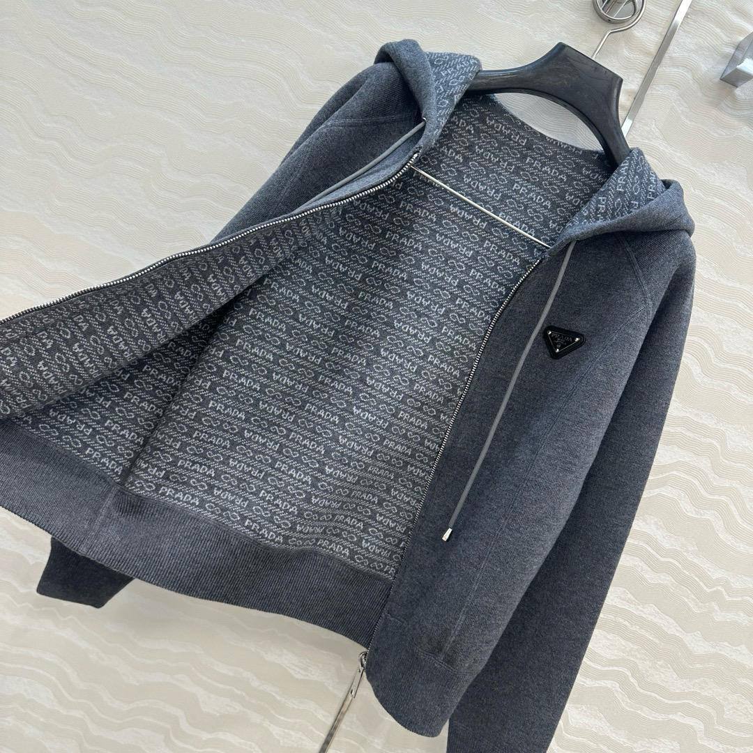 Стильное худи от Prada представляет собой удобный и модный элемент гардероба, идеально подходящий для создания расслабленных, но элегантных образов. Застежка-молния и капюшон делают эту модель практичной для повседневной носки.