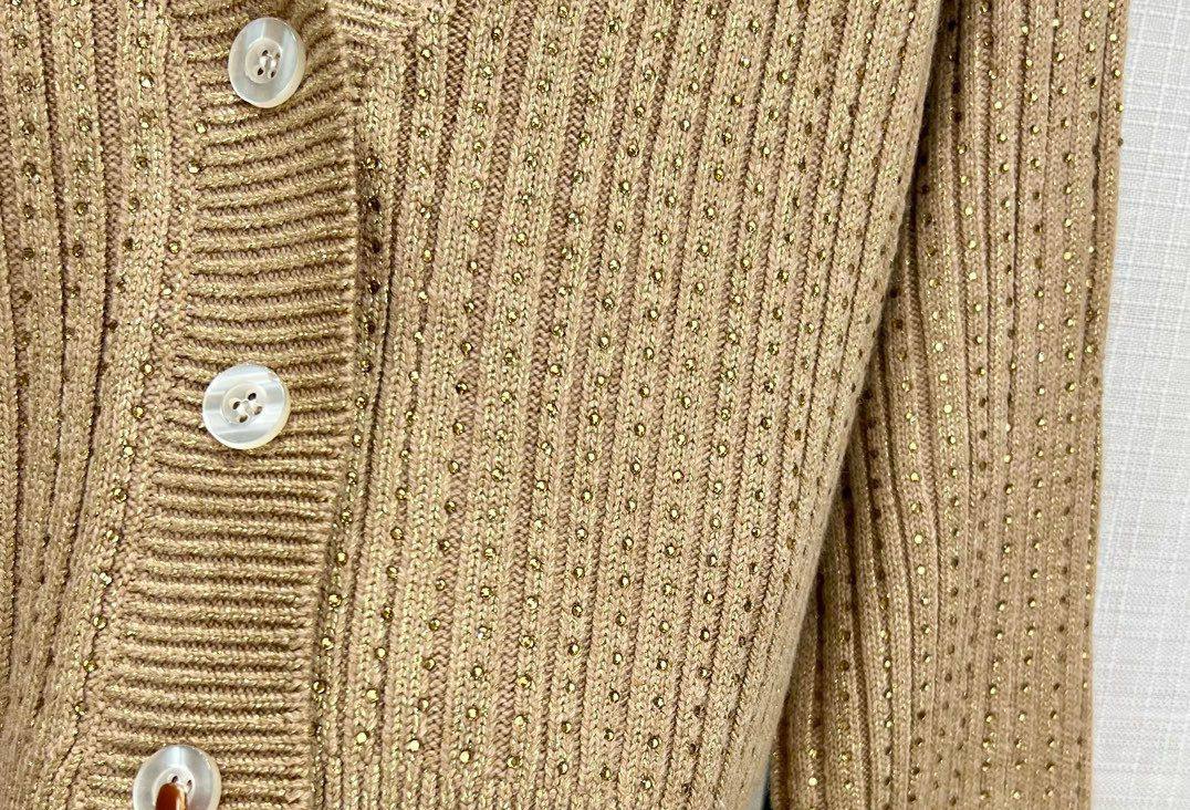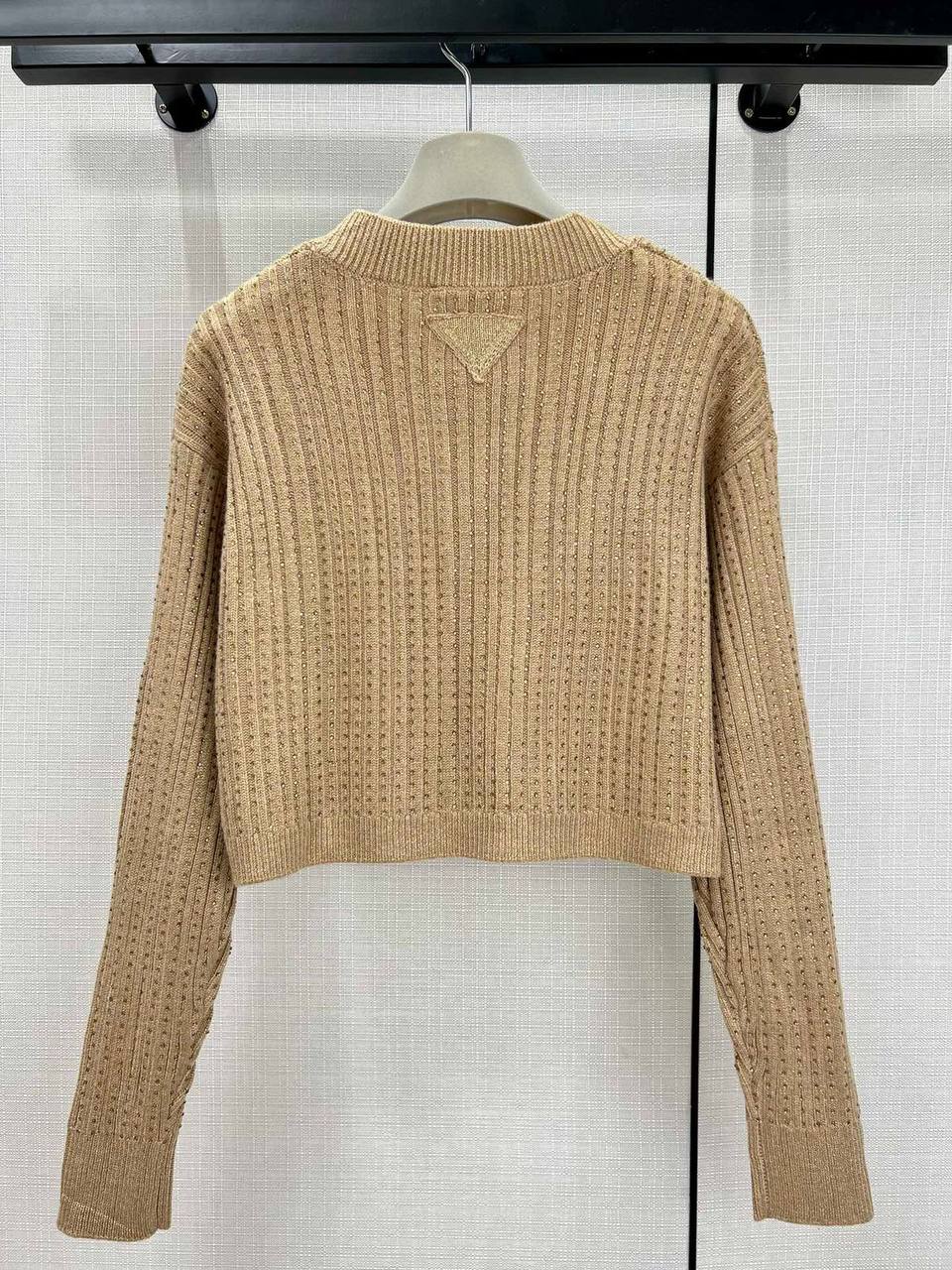 Кардиган Prada LUX-113387 – это воплощение элегантности и стиля от известного бренда. Этот укороченный кардиган с V-образным вырезом выполнен в приятном бежевом оттенке и имеет изысканную текстуру вязки. Идеально подходит для создания многослойных образов, добавления акцента к повседневному или вечернему наряду.