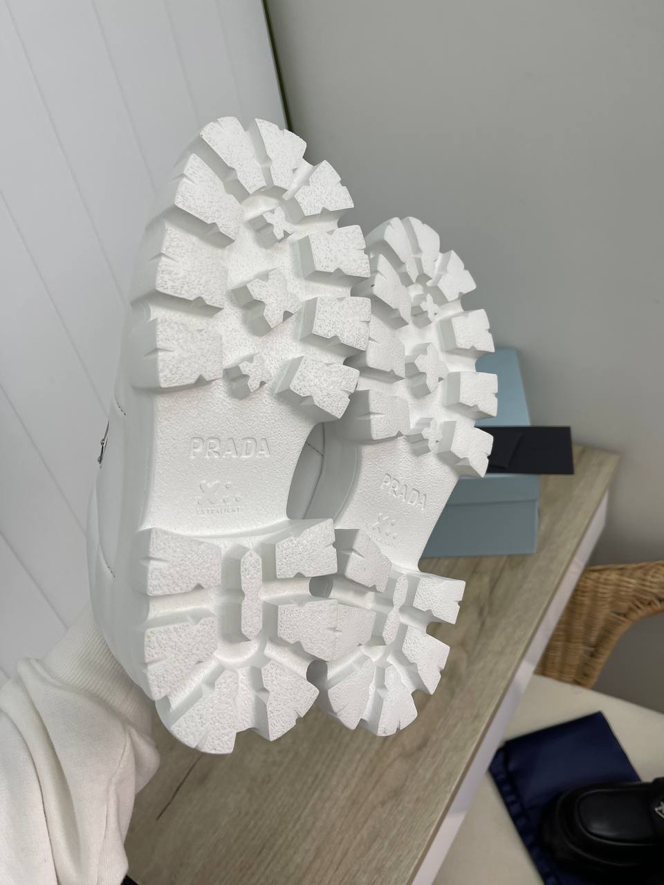 Кеды Prada LUX-89039 - это стильная обувь от известного бренда. Они выполнены в белом цвете, с толстой рельефной подошвой, создающей современный вид. Данная модель сочетает в себе комфорт и актуальный дизайн, идеально подходя для повседневной носки.
