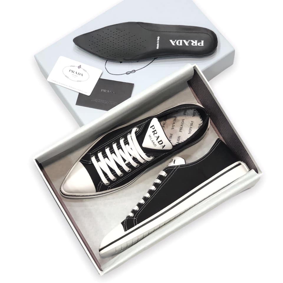 Эти черные кеды Prada LUX-47548 представляют собой стильное сочетание классического дизайна и современного комфорта. Модель с белыми шнурками и контрастной белой резиновой подошвой выглядит лаконично и элегантно, идеально подходя для создания повседневных образов.