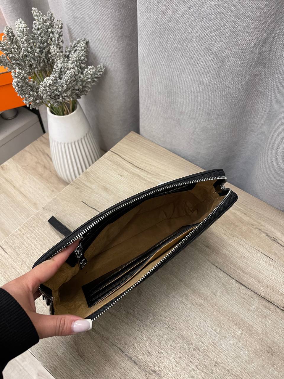 Клатч Prada LUX-109030 - это стильный аксессуар от известного бренда, выполненный в лаконичном дизайне. Чёрный цвет и текстурированная поверхность делают его универсальным дополнением к любому образу. Клатч идеально подходит для хранения необходимых вещей, сочетая в себе элегантность и практичность.